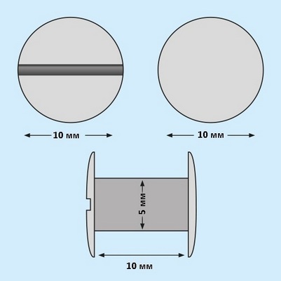 Высота винта, мм : 7 Высота ножки ответной части, мм : 6.5 Диаметр шляпки, мм : 10