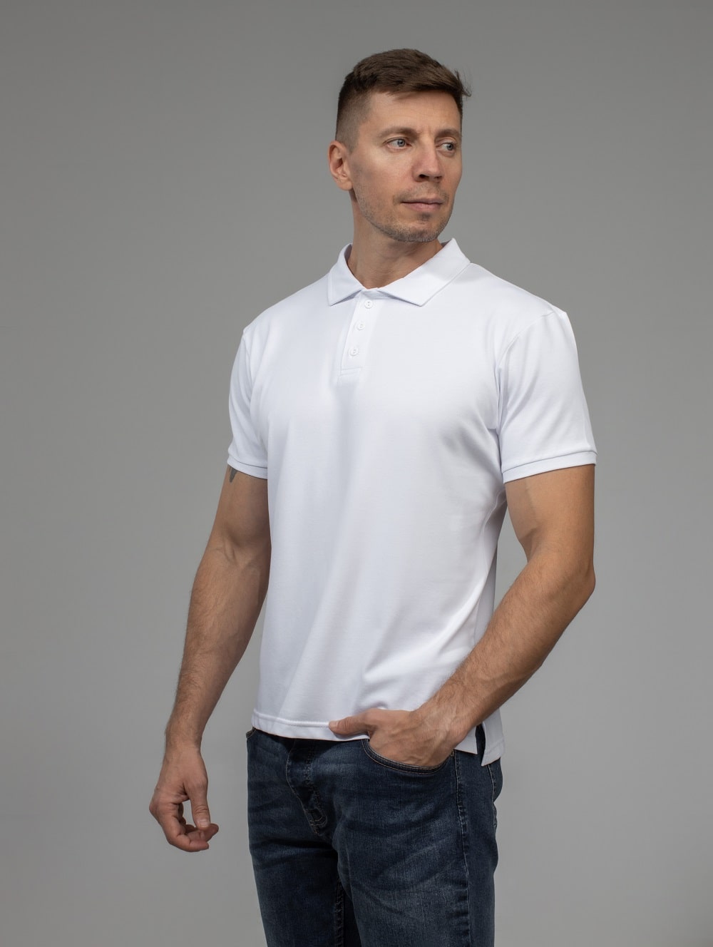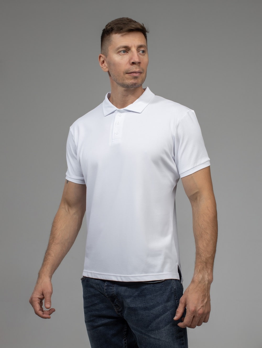 Рубашка-поло под сублимацию Evolution (имитация хлопка), белая