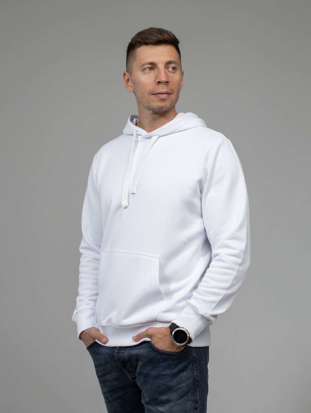 Белоснежное худи Evolution — современный стандарт в мире одежды для сублимации, где фотографическая яркость принта встречается с абсолютным комфортом. Модель разработана как флагманское решение для создания эксклюзивного мерча, дизайнерских коллекций или стильной командной формы.