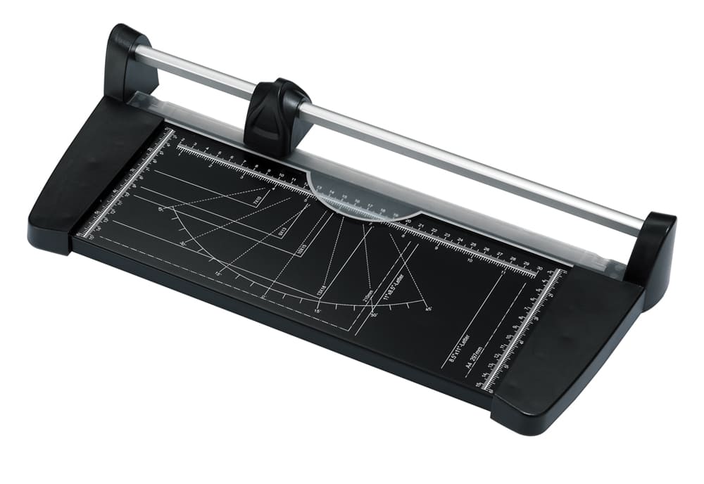 Компактный роликовый резак формата А4. Качественный и надежный резак для бумаги с металлическим столом, разметкой и автоматическим прижимом стопы бумаги во время реза для максимального удобстава. Подойдет для офисов и организаций со средним объемом работ.
