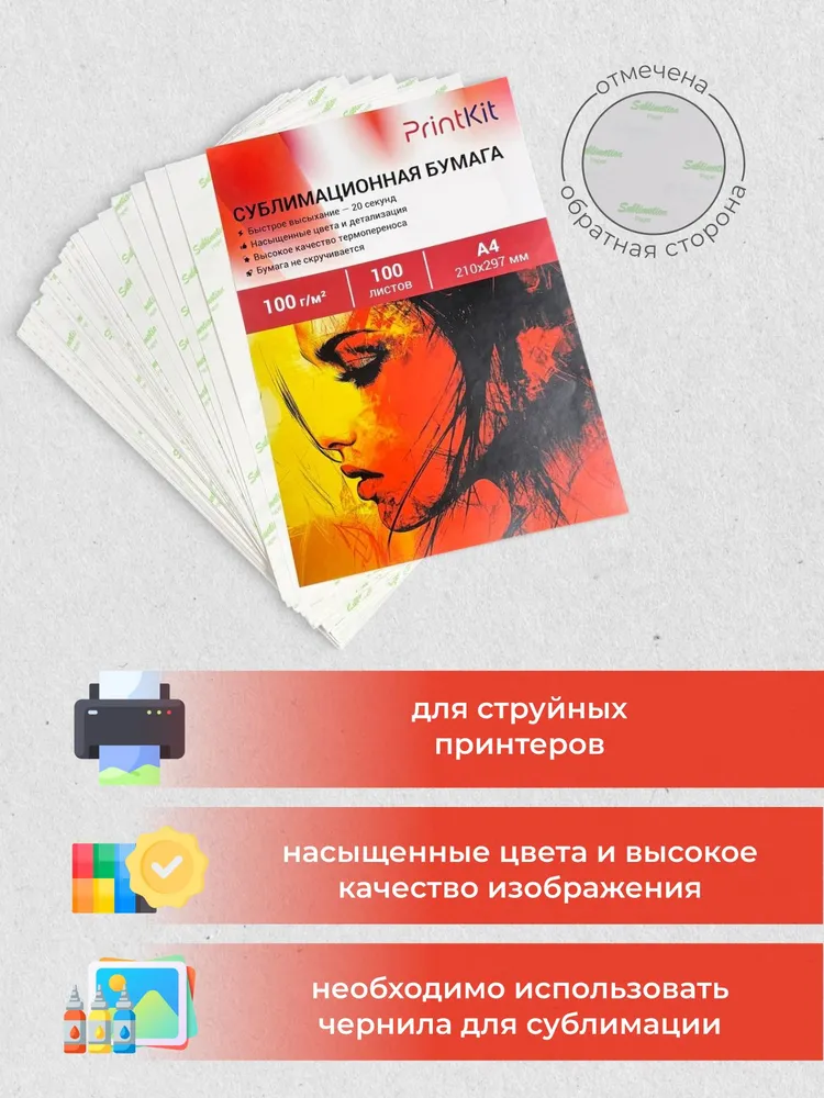Сублимационная бумага PrintKit — это высокотехнологичное решение для создания яркой, насыщенной и долговечной сувенирной продукции. Благодаря специализированному микропористому покрытию, бумага обеспечивает безупречную передачу цветов и фотографическую детализацию изображения, что делает её идеальным выбором как для творческих проектов, так и для серийного производства.