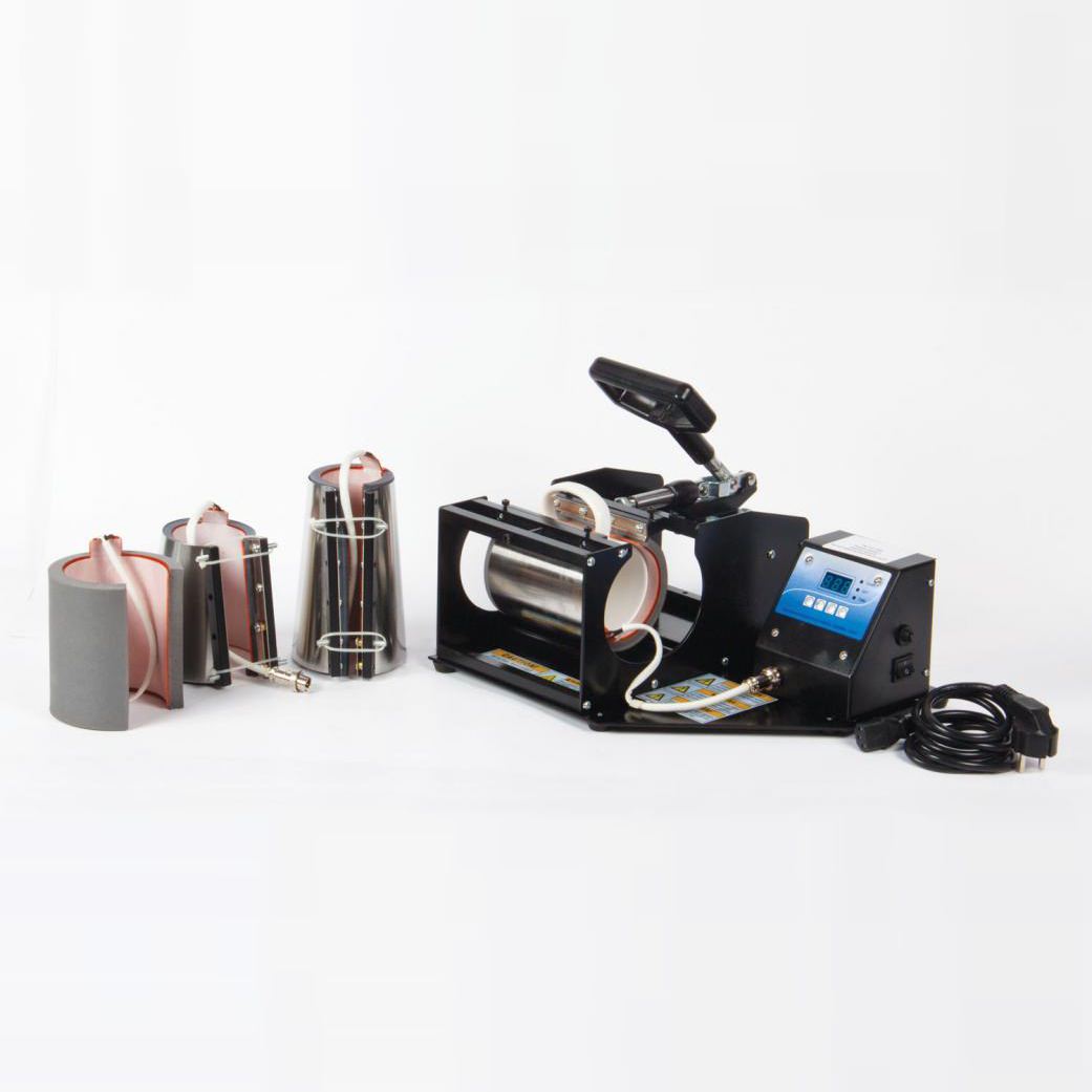 Универсальный термопресс «4 в 1» — это профессиональное решение, созданное для качественного нанесения изображений на самые востребованные форматы посуды. Главное преимущество данной модели — богатая базовая комплектация, которая позволяет работать практически с любыми цилиндрическими и конусными заготовками без дополнительных вложений в оборудование.