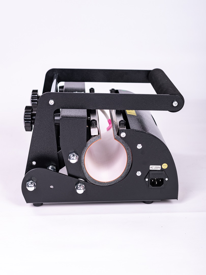 - Работа с высоким мерчем: пресс идеально подходит для полной запечатки высоких термосов, спортивных бутылок, термостаканов и массивных пивных кружек высотой до 25 см без необходимости переворота изделия.