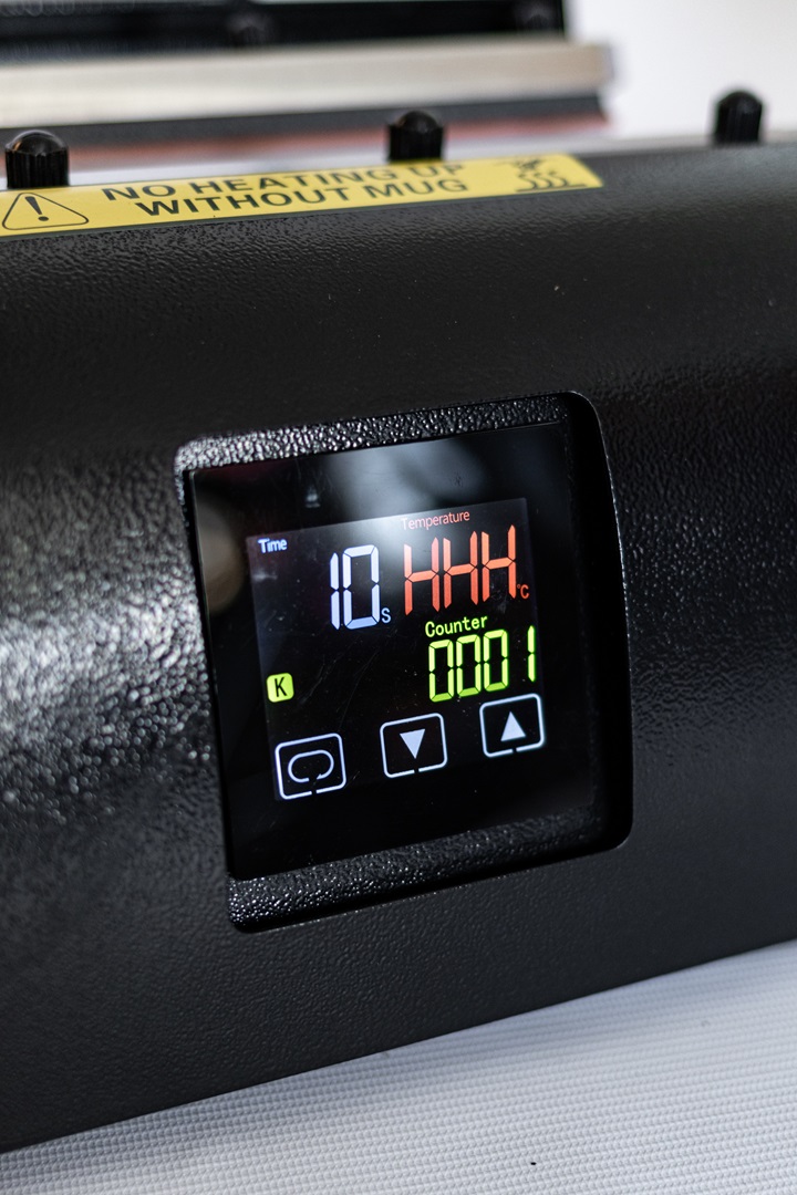 Двойная эффективность: Размер нагревателя позволяет запечатывать одновременно две стандартные кружки (11 oz / 330 мл), что сокращает время производства в два раза.
